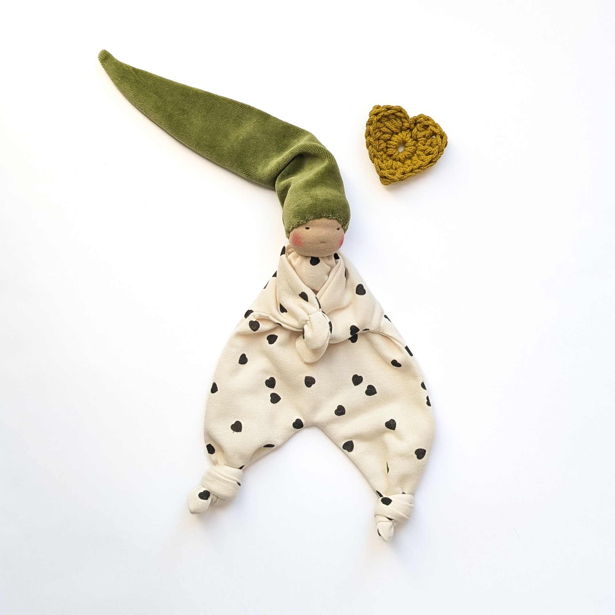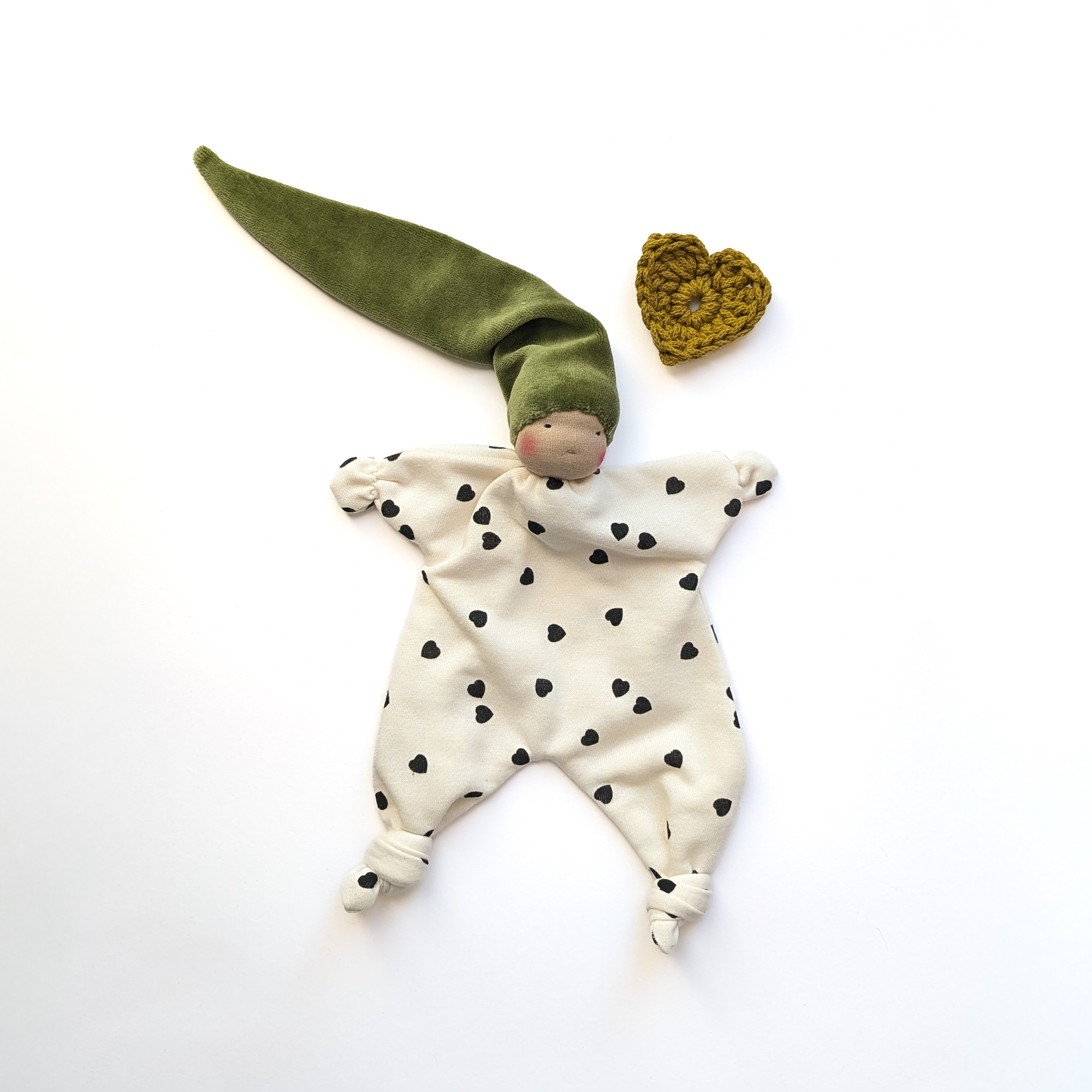 Doudou Waldorf Bloomy (coeurs noirs)