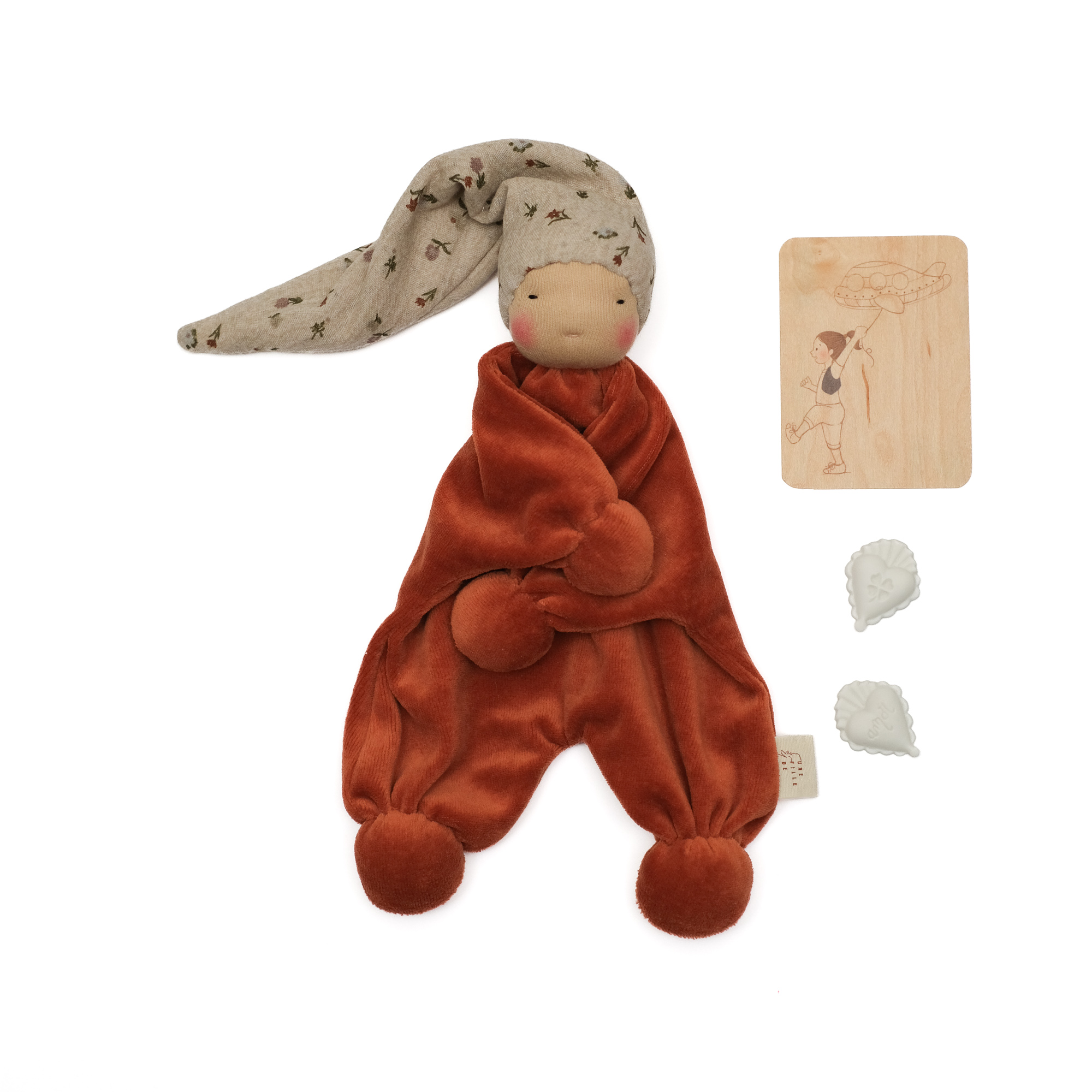 Sa couleur terracotta évoque la chaleur de la terre, un cocon rassurant où tout semble à portée de main. Ce doudou Waldorf pour bébé se fait compagnon discret des premiers instants, ceux où chaque geste, chaque regard est une découverte.