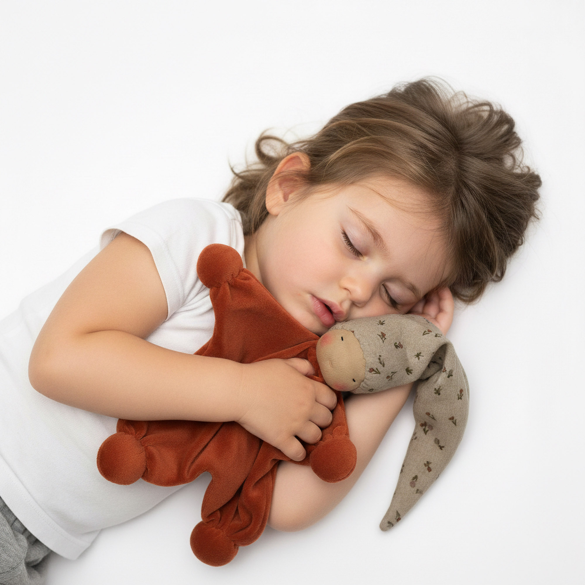 Certaines teintes parlent d’elles-mêmes et invitent à la douceur. Le doudou Waldorf Classic Fleur Terracotta en fait partie.