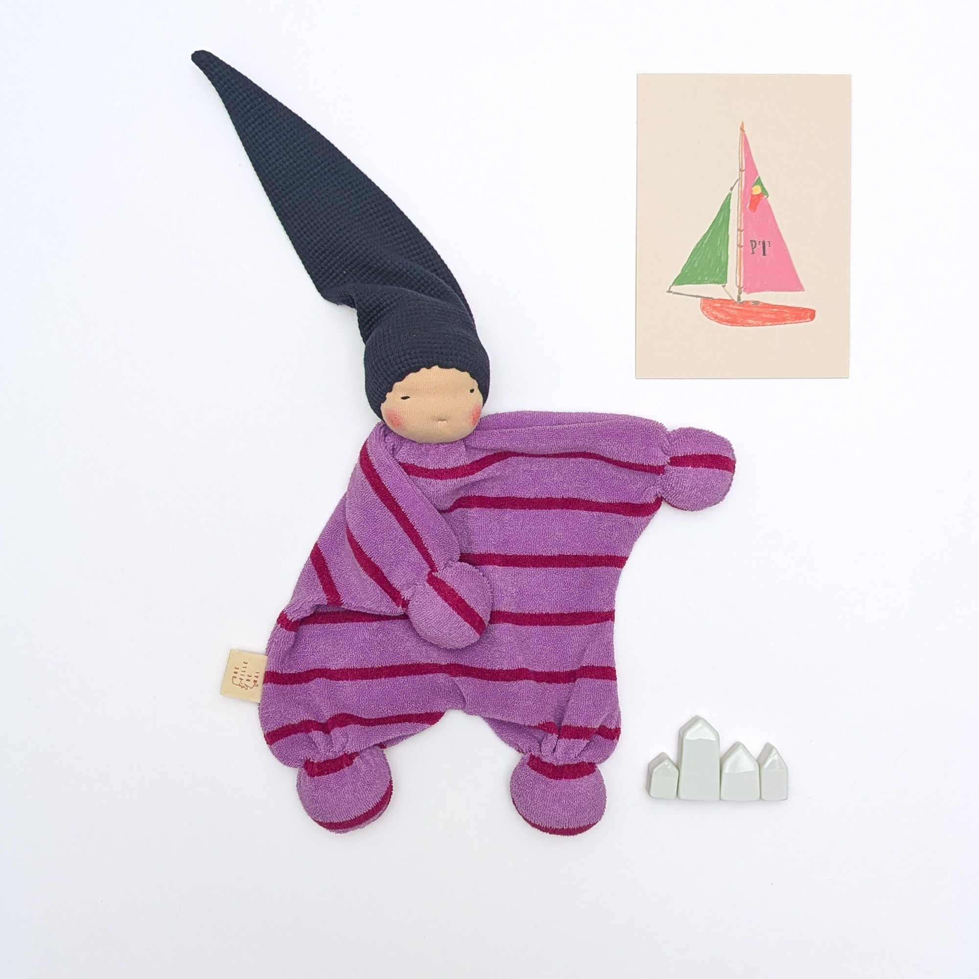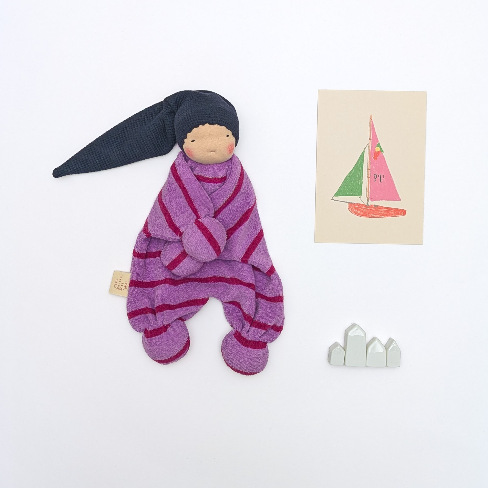 Doudou Waldorf Classic rayures roses, le premier compagnon dont votre bébé ne voudra plus se séparer.