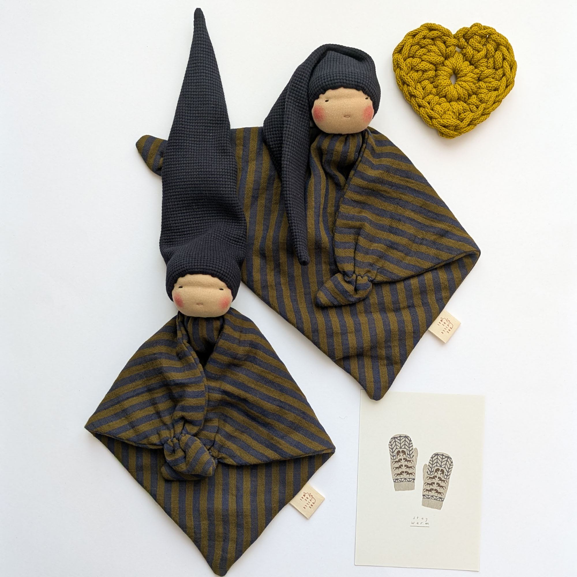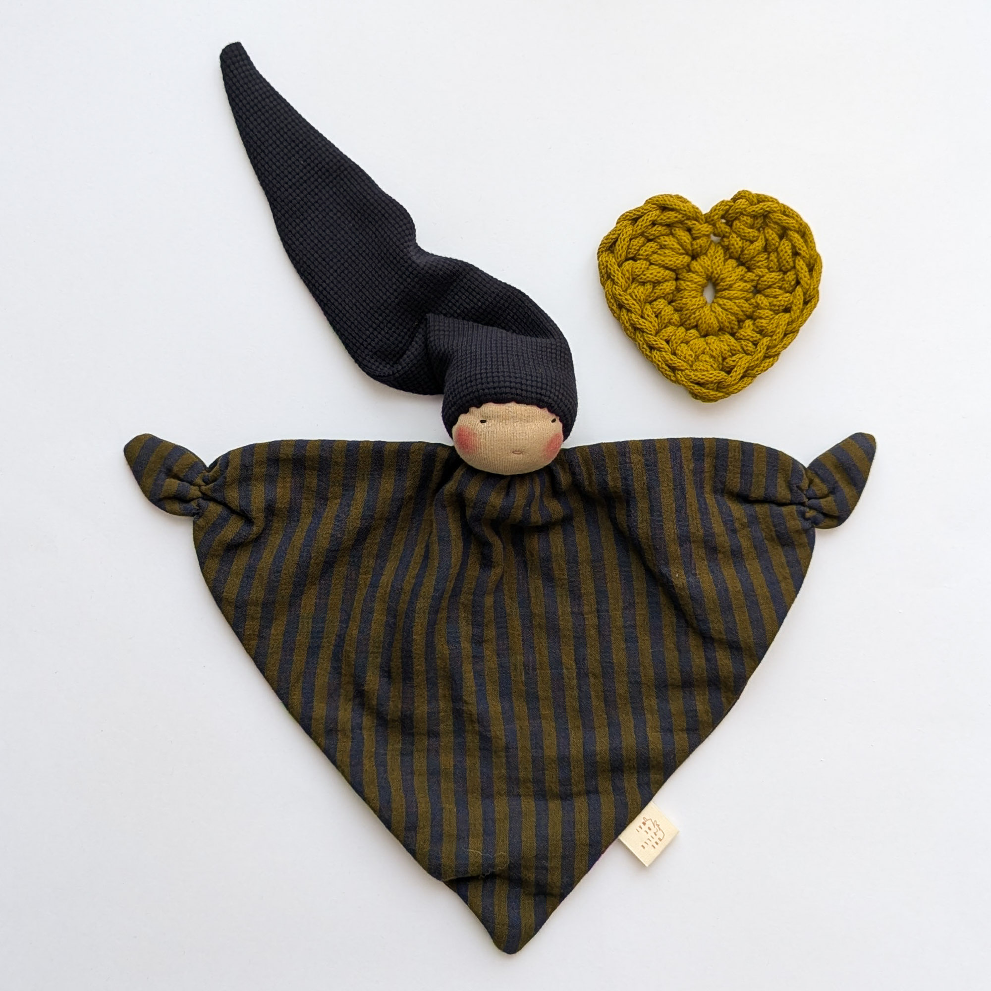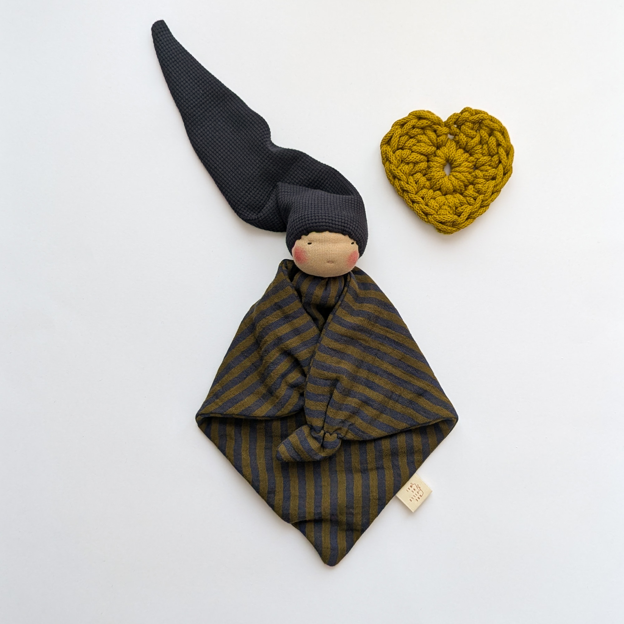 Facile à saisir par les petites mains, ce doudou artisanal devient rapidement un repère affectif, porteur de douceur et de réconfort au quotidien. Il accompagne l’enfant dans ses premières découvertes, ses jeux et ses nuits, tout en décorant la chambre avec élégance et sobriété.