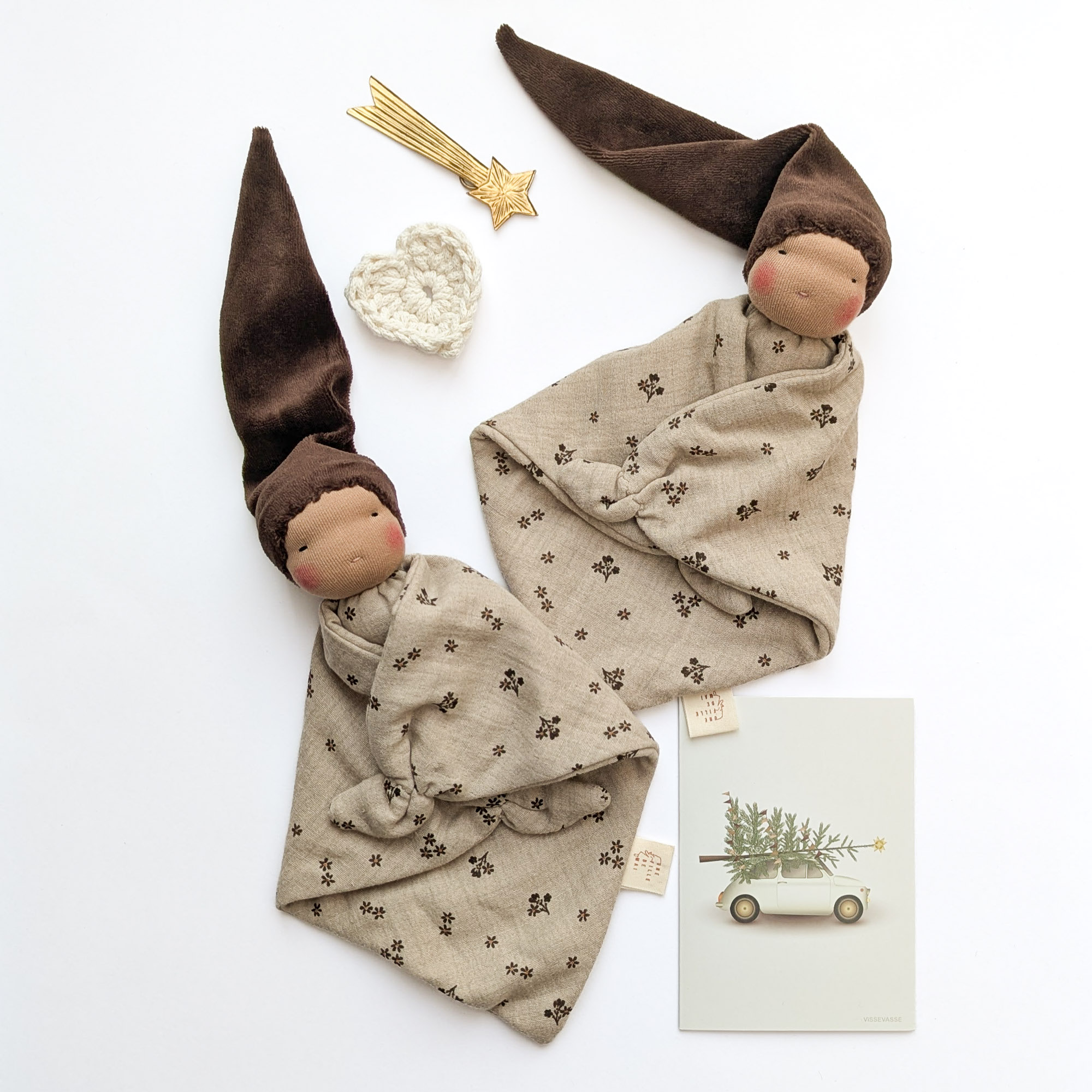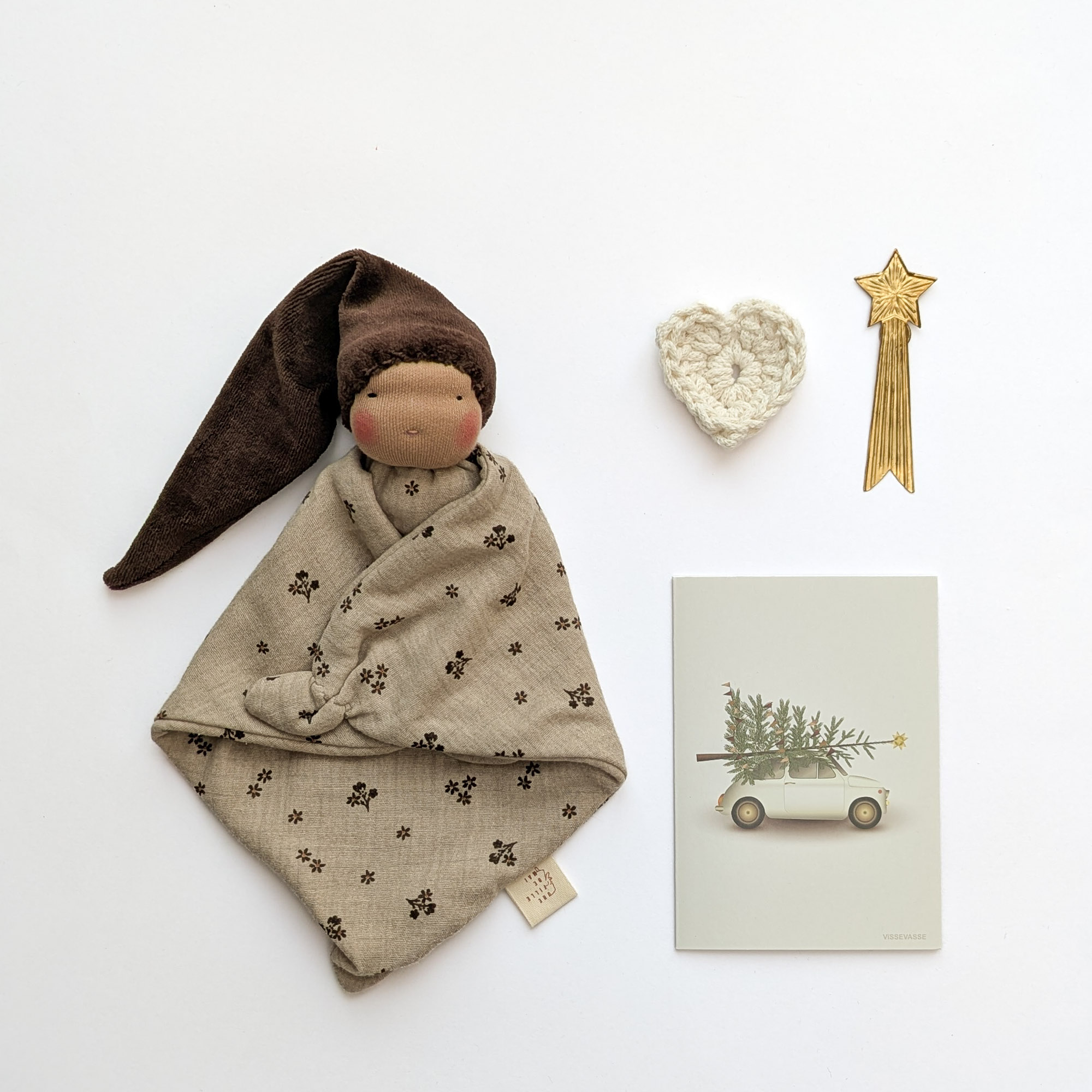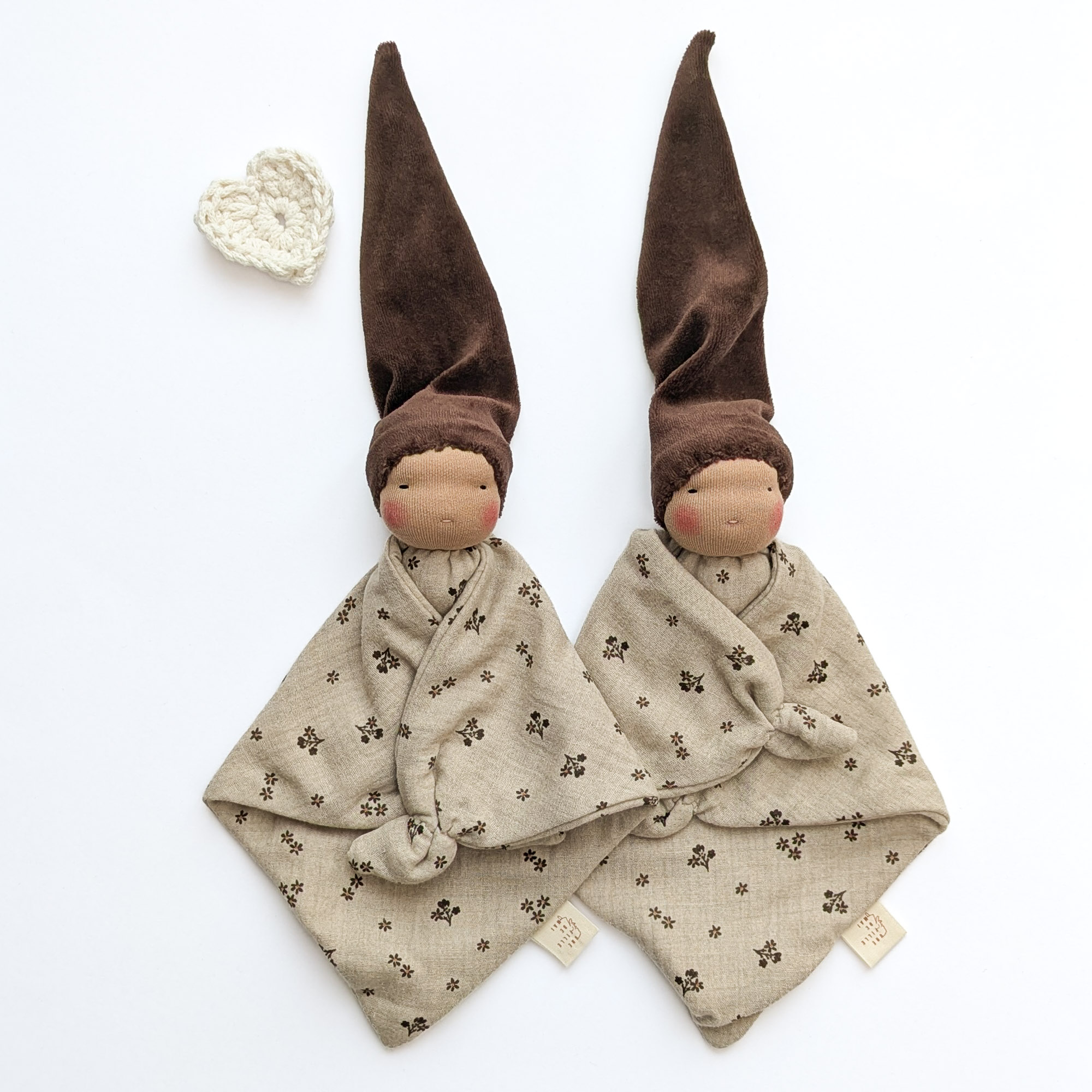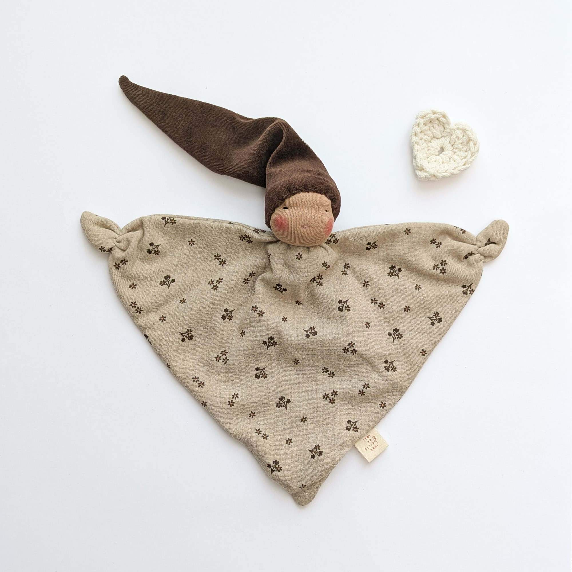 Doudou bébé naturel fait main, confectionné avec soin pour entourer votre enfant de douceur et de réconfort. Le doudou Simply d’inspiration Waldorf est réalisé en coton certifié, une matière naturelle, respirante et respectueuse de la peau sensible des tout-petits — parfaite pour un doudou de naissance artisanal.