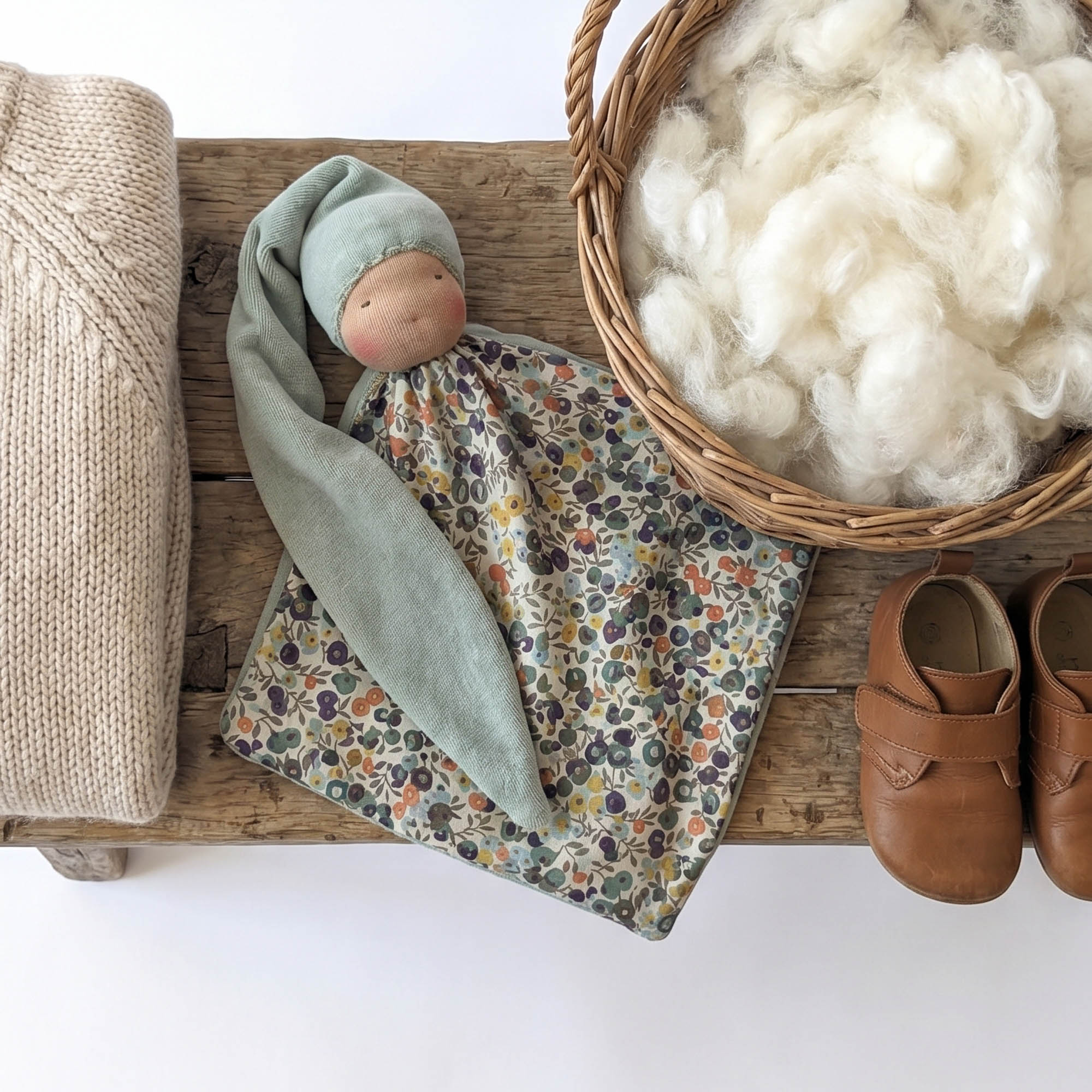 Le doudou Waldorf Tiny céladon a été imaginé pour accompagner bébé dès la naissance, avec délicatesse et simplicité.