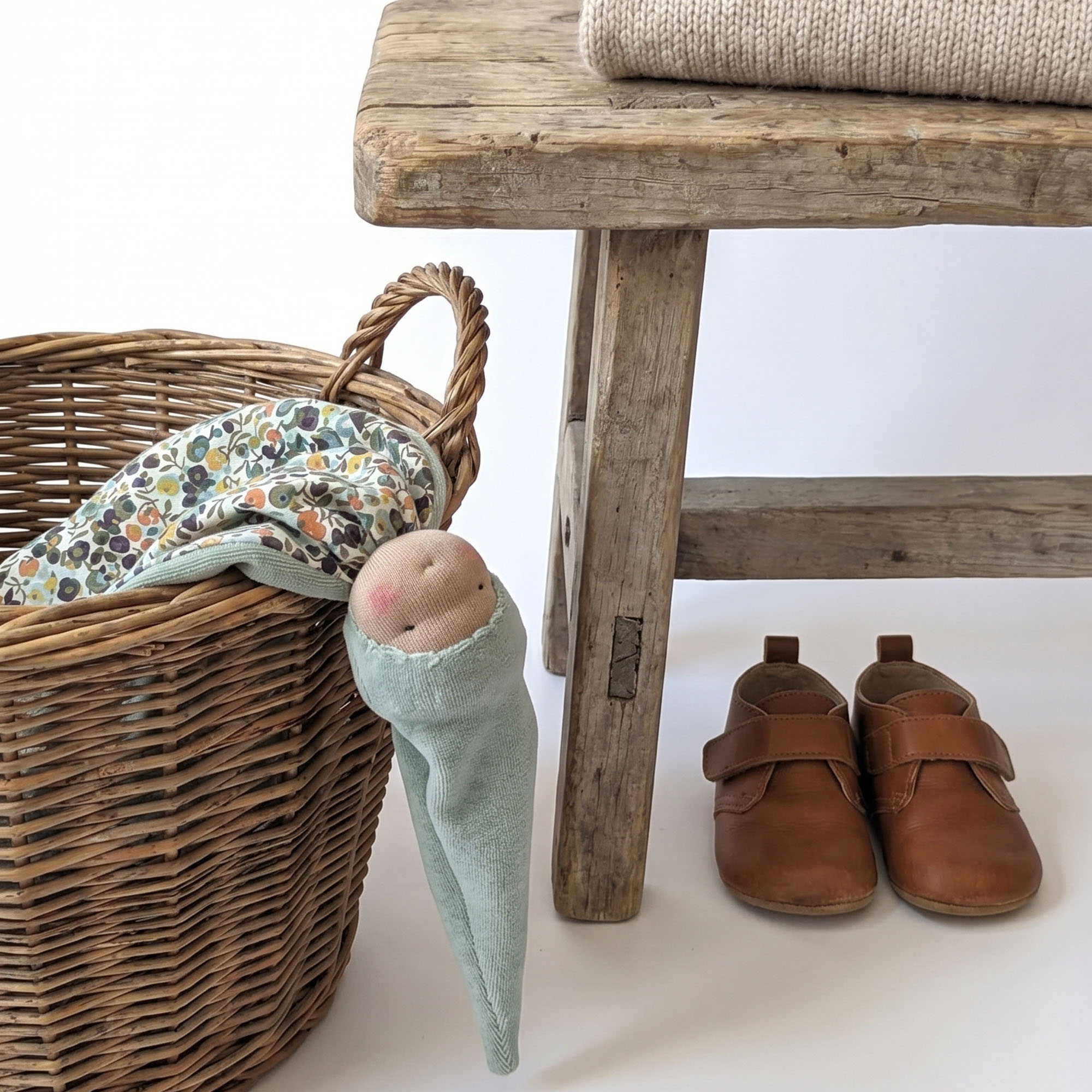 Un doudou artisanal pour bébé, à la fois discret et singulier, qui trouve sa place au fil des jours et accompagne les premiers repères du quotidien.