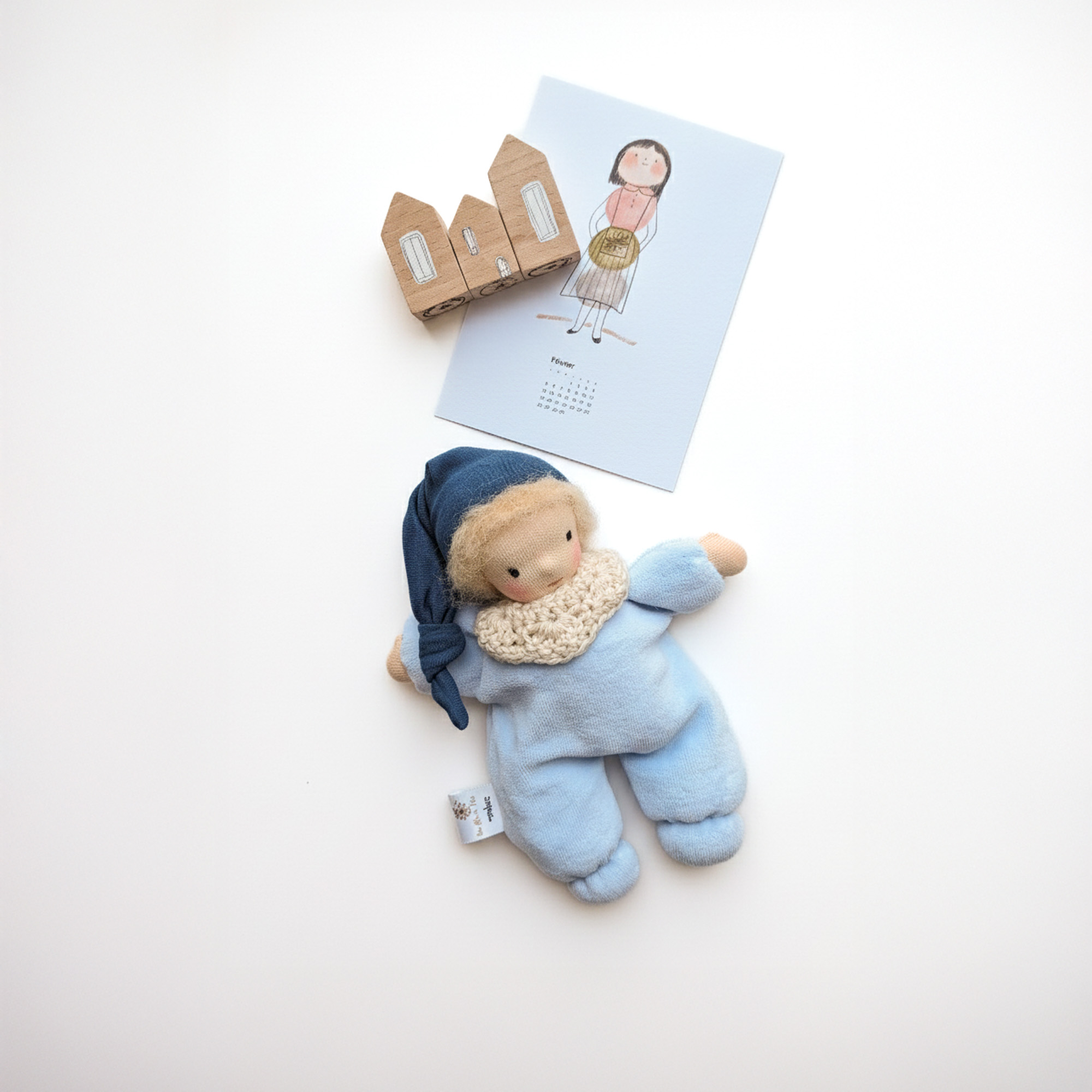 Parmi les premiers gestes de votre enfant, il y aura peut-être celui-ci : serrer cette poupée d’inspiration Waldorf contre lui.